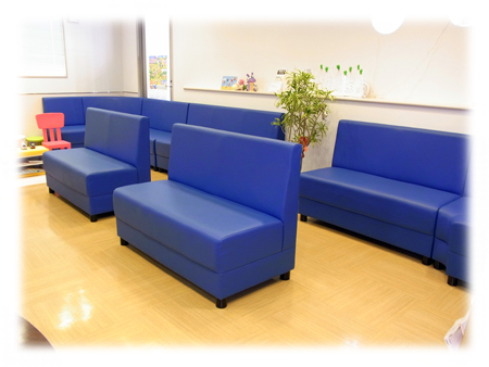 ★待合室清潔感があり落ち着いた 雰囲気の待合室です。 TVモニターや 雑誌を 見ながら、 ゆったりとした ソファーで お待ちになれます。